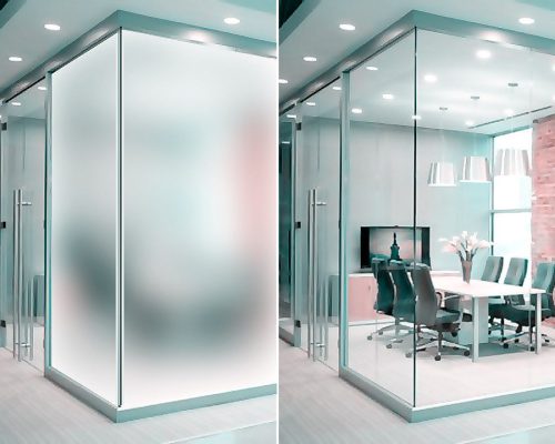 با استفاده از سیستم های کنترلی، شیشه های هوشمند قادر به تغییر شفافیت خود از حالت شفاف به حالت مات و برعکس می باشند. این ویژگی می تواند در کنترل نور و حرارت و همچنین حفظ حریم خصوصی در فضاهای داخلی مورد استفاده قرار گیرد.